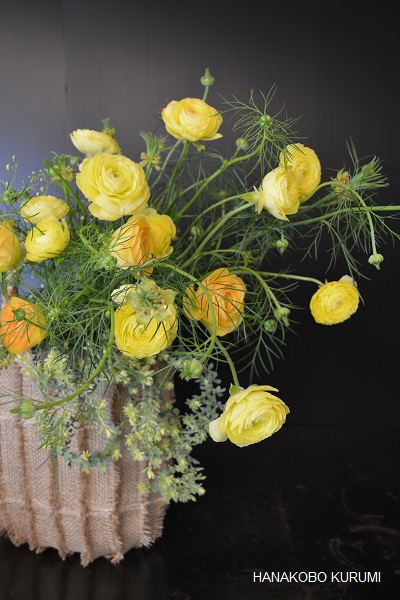 小花たちをさりげなく束ねるような仕上がりに。